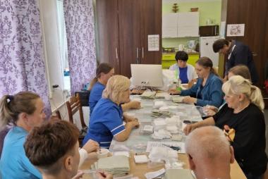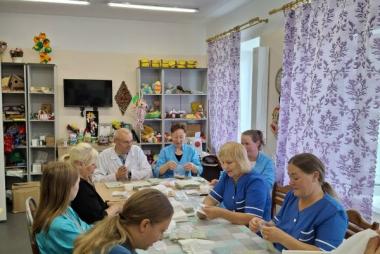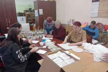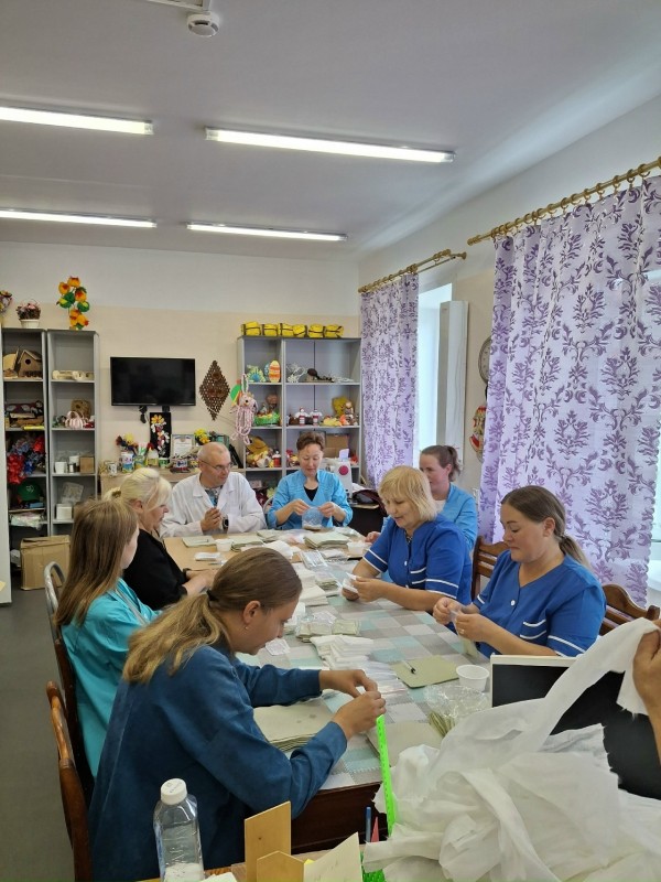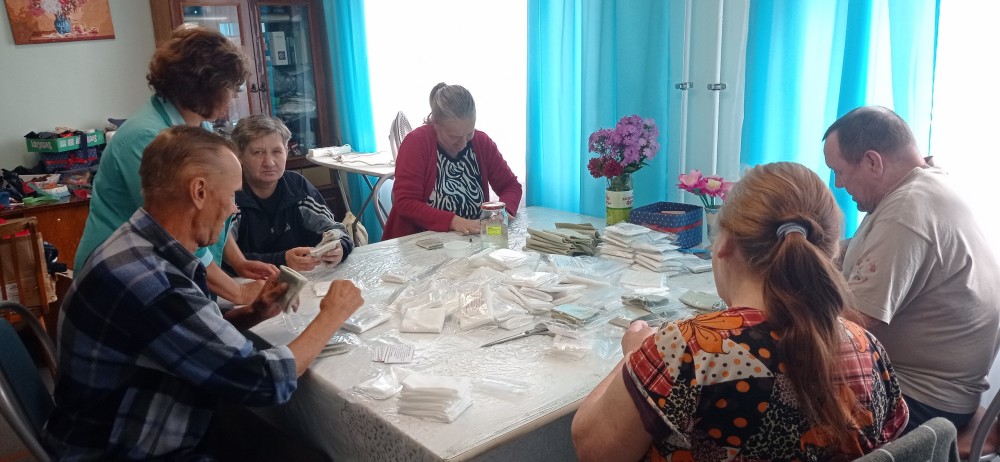 От всей души хочется поблагодарить специалистов и получателей социальных услуг за час Добра, которые они выделяют для помощи нашим бойцам. Третий год наше учреждение комплектует сухой душ, заливает окопные свечи, наши женщины вяжут тёплые носки, пишут письма. За период 2023-2025г. в зону СВО было отправлено 35000 пакетов сухого душа, 4300 банок окопных свечей, 150 пар шерстяных носков, многие работники помогают материально, спасибо всем большое.