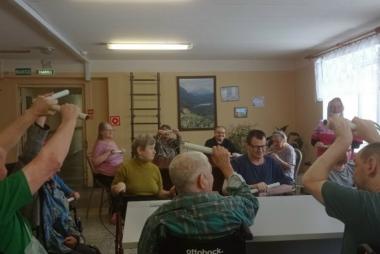 Получатели социальных услуг активно и весело выполняли задания на ловкость и смекалку.