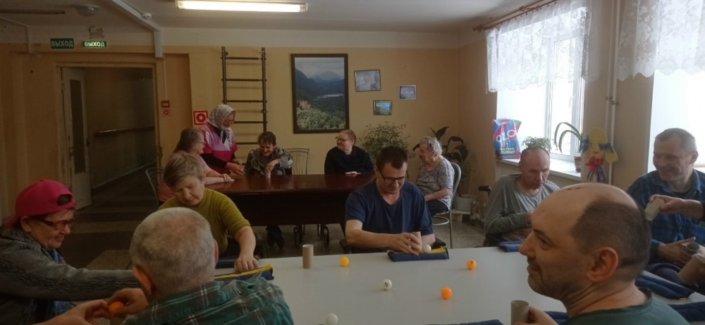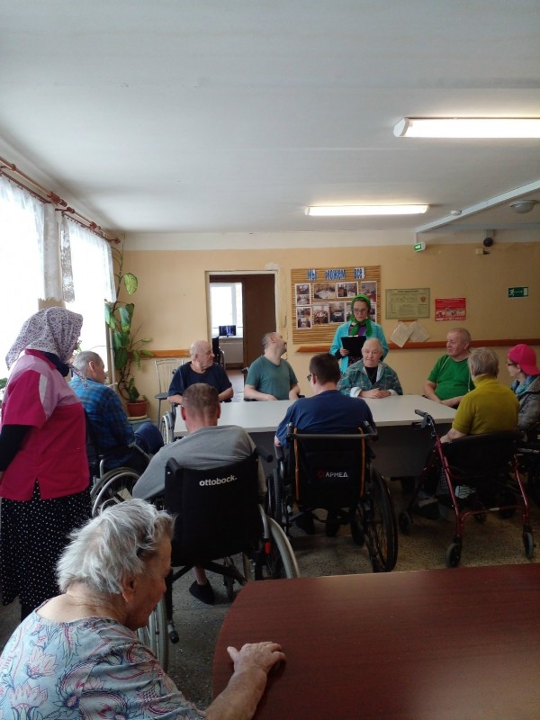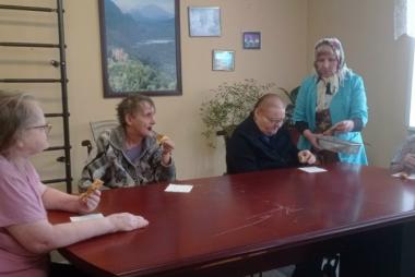 20 февраля на отделении милосердия Видлицкого ДИ прошло игровое занятие "Масленица в гости пришла"