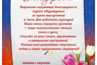 Всем работникам культуры желаем неиссякаемого вдохновения, творческих успехов, новых ярких проектов и здоровья.