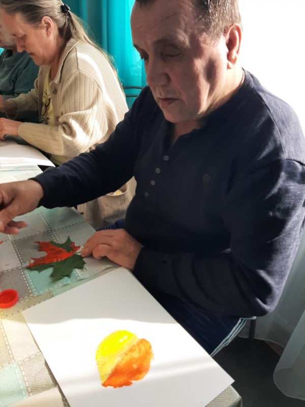 Сегодня группа людей нашего дома доказала, что искусство видеть прекрасное - это навык, который с годами только оттачивается!На творческом мастер-классе участники не рисовали кистями, а использовали саму природу как инструмент. Они создавали уникальные композиции с помощью листьев и красок!