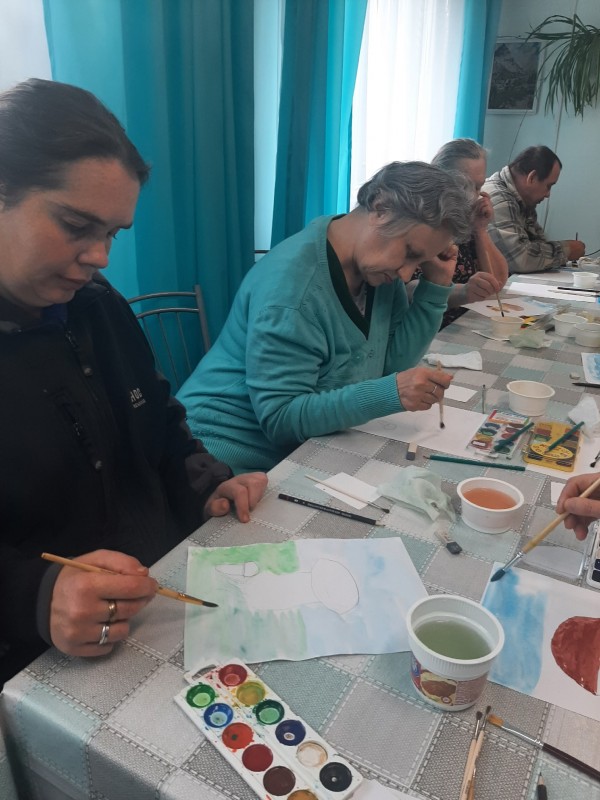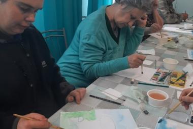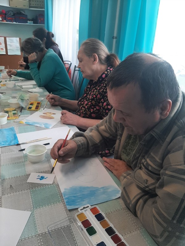 Сегодня инструктор по труду Зинкуева Н.В. провела волшебный мастер-класс по акварели для наших проживающих.