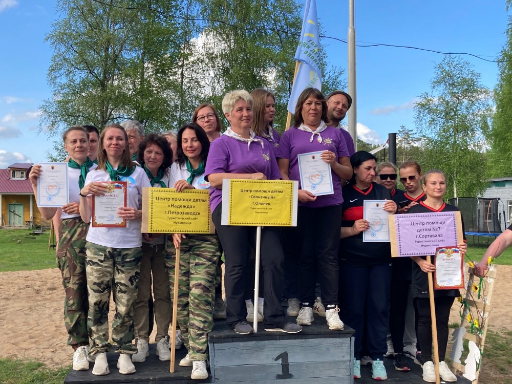 ЦПД «Солнечный»;2 ЦПД «Надежда»;3 ЦПД 7 Сортавала.Важно сказать, что команда Центра помощи детям «Солнечный» становится победителем уже в четвёртый раз! И, как мне кажется, своё первенство уступать не собираются. Тем интереснее будут соревнования в следующем году на пятом, юбилейном, слёте!Я уверена, что сегодняшний день будет одним из лучших дней в этом году в памяти участников слёта. Целый день на свежем воздухе (погода не подвела: был тёплый солнечный день, завтра лето!), в компании коллег (прекрасная возможность поближе узнать друг друга вне рабочей обстановки и пообщаться «не по работе»), пообедать на свежем воздухе (уха, приготовленная на открытом огне и блюда конкурсантов были вне конкуренции), достаточно серьезная физическая нагрузка (забота о здоровье!) и многое другое.А ещё лично мне запомнилось безопасное поле пчёл (они занимались своим делом, мы - своим), доброжелательное отношение работников Центра помощи детям «Солнечный», подарки победителям, изготовленные своими руками, и спокойная дружеская обстановка Благодарю Татьяну Сергеевну Васильевну, директора Центра помощи детям «Солнечный» и коллектив Центра помощи детям «Солнечный» за приглашение, организацию и проведение туристического слёта, за ответственное отношение к своему делу, доброжелательное отношение к каждому участнику! Пусть все ваши планы реализовываются, пишутся новые проекты, пусть сил хватит на все ваши добрые дела!Ещё больше фотографий vk.com/album29123851_307506938