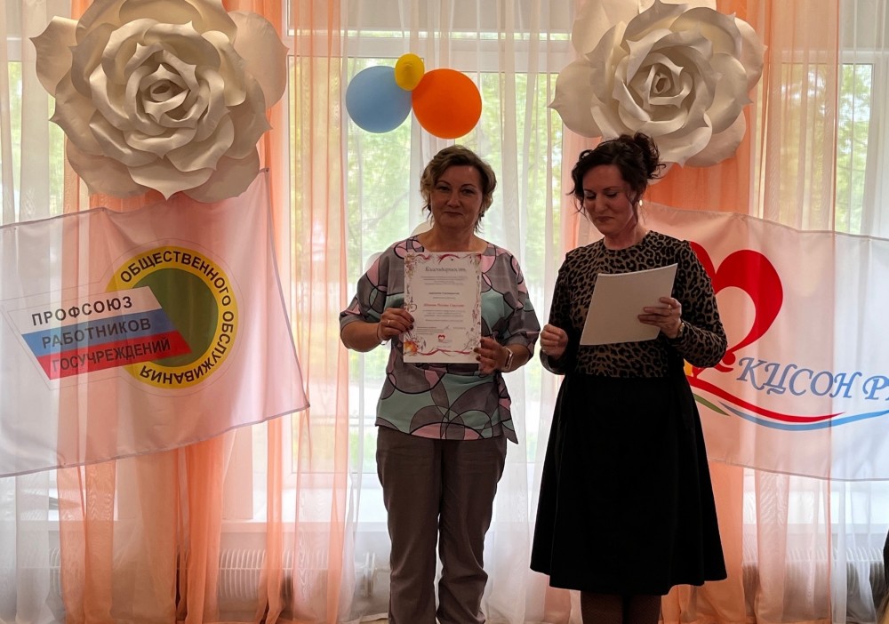 Вручила благодарности и почетные грамоты Министерства социальной защиты Республики Карелия, а также поздравила коллектив с наступающим профессиональным праздником! Поздравила членов профсоюза и председатель профсоюзной ячейки Виктория Ивановна Мустафина, и вручила благодарности, благодарственные письма, дипломы за активность и участие в профсоюзных конкурсах, а так же подарки!