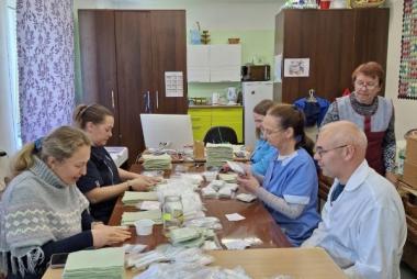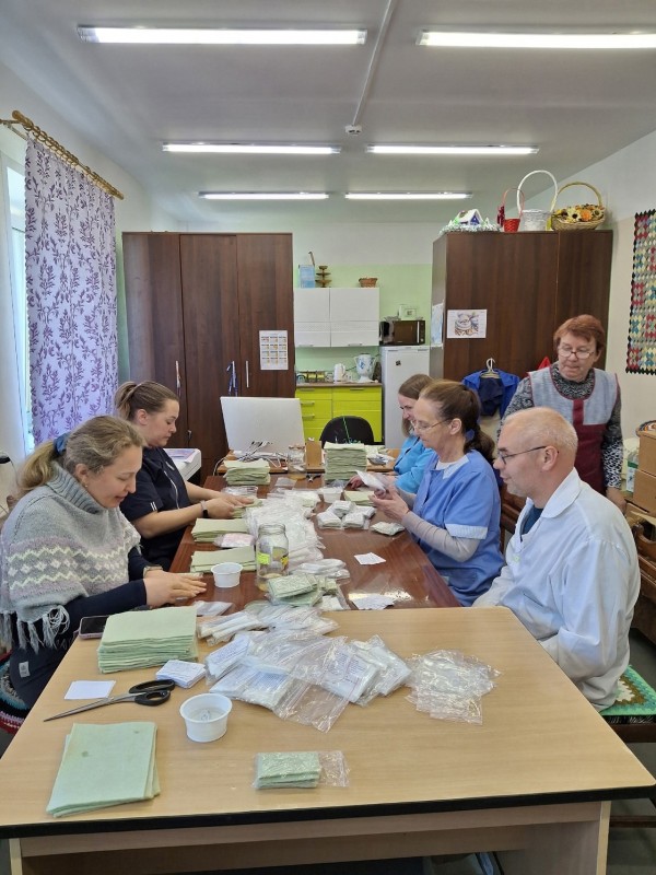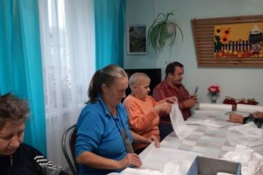 Мы присоединяемся к разным акциям по сбору гуманитарной помощи, комплектуем пакеты сухого(армейского душа), заливаем окопные свечи, из подаренной дому интернату ткани шьём полотенца. Каждый старается внести свой посильный вклад, чтобы поддержать наших мужчин. Также подопечные пишут письма со словами поддержки, вяжут носки и даже вносят свои денежные средства на покупку материалов для сухого душа.