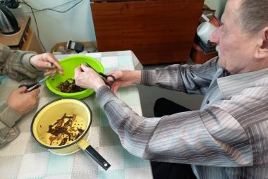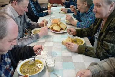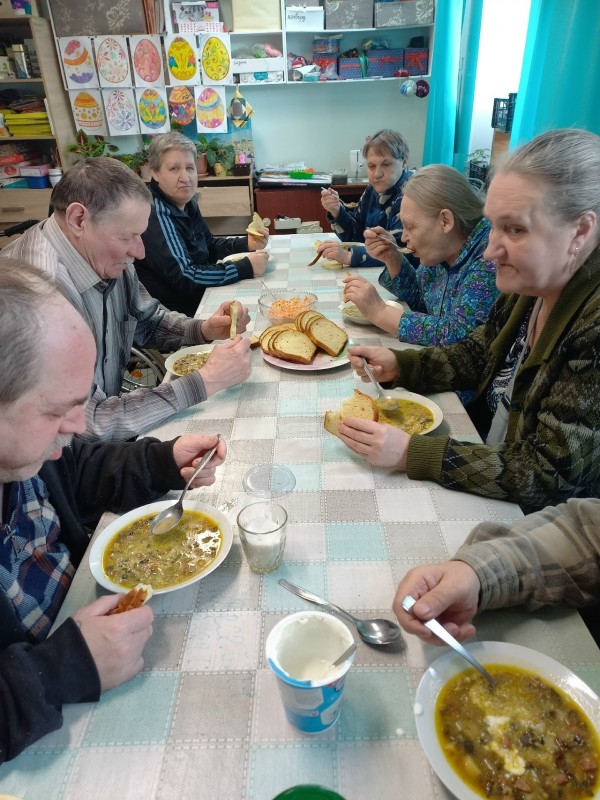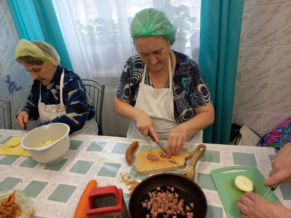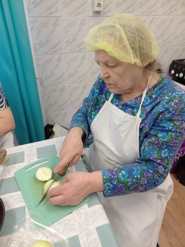 Тема, на первый взгляд, простая - « Грибной суп»,- но на деле оказалась самой настоящей арт - терапией. Участников разделили: кто-то ловко справлялся с ножом, кто-то аккуратно жарил поджарку, а кто-то заправлял суп специями. Никто не чувствовал себя лишним или немощным. Мы не просто «провели время»- мы в итоге сели за большой стол и попробовали тот самый суп. Сметана, укроп, наваристый бульон… Для многих пожилых людей еда из столовой – привычное дело, но суп, сваренный своими руками в компании, показался невероятно вкусным. Для женщин в интернате этот мастер-класс стал глотком живой жизни. Они снова почувствовали себя хозяйками, хранительницами очага. У них блестели глаза, когда они хвалили своё блюдо. Это был не просто рецепт грибного супа. Это был рецепт человеческого тепла, общения и возвращения забытых навыков. Всем, кто думает, что пенсионерам в интернате нужны только лекарства - поверьте, им гораздо больше нужна вот такая простая радость: шум воды, звон ложек, ароматный пар над кастрюлей и чувство, что ты кому-то нужен.