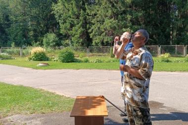" Водяные снайперы" ( стреляли по кеглям из водяных пистолетов),