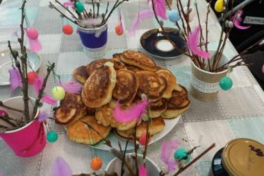 Это был настоящий праздник творчества. Всем очень понравилось работать с природными материалами – украшать веточки нежными пёрышками. Отдельный восторг – лепка яиц из пластилина и их «вывешивание» на импровизированное дерево, получилось очень красиво и необычно. Но самым вкусным моментом, конечно, стала кулинарная часть: мы вместе напекли оладьи , и они получились невероятно вкусными! Съели всё с большим аппетитом.