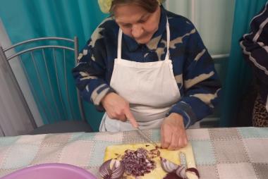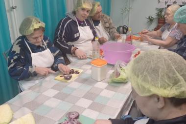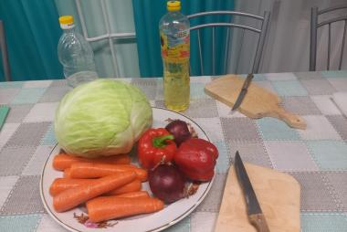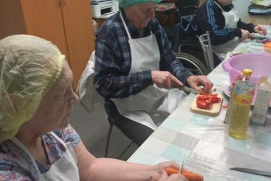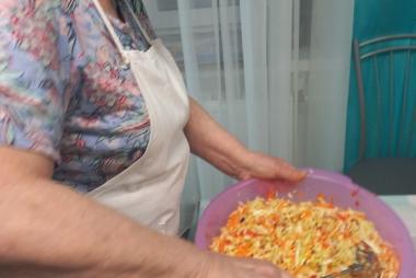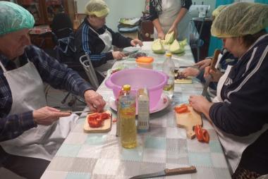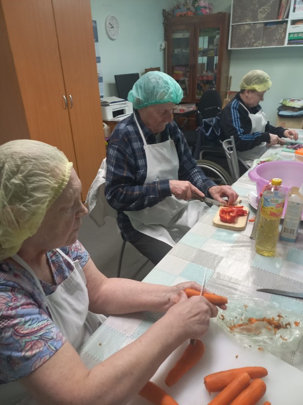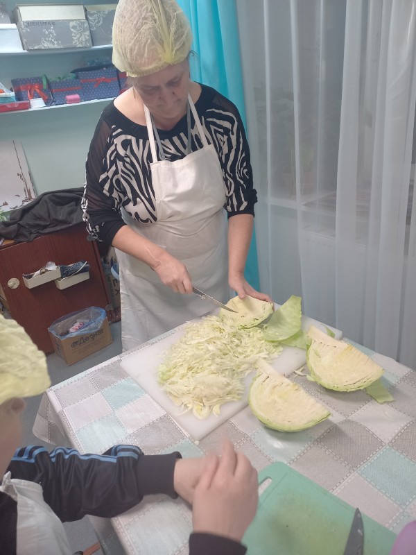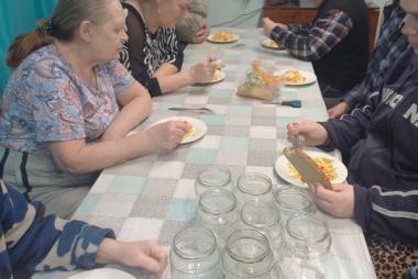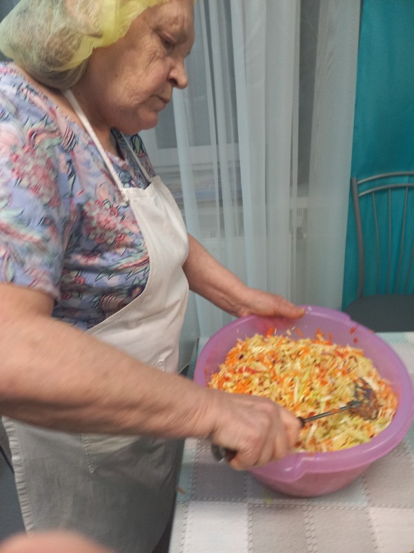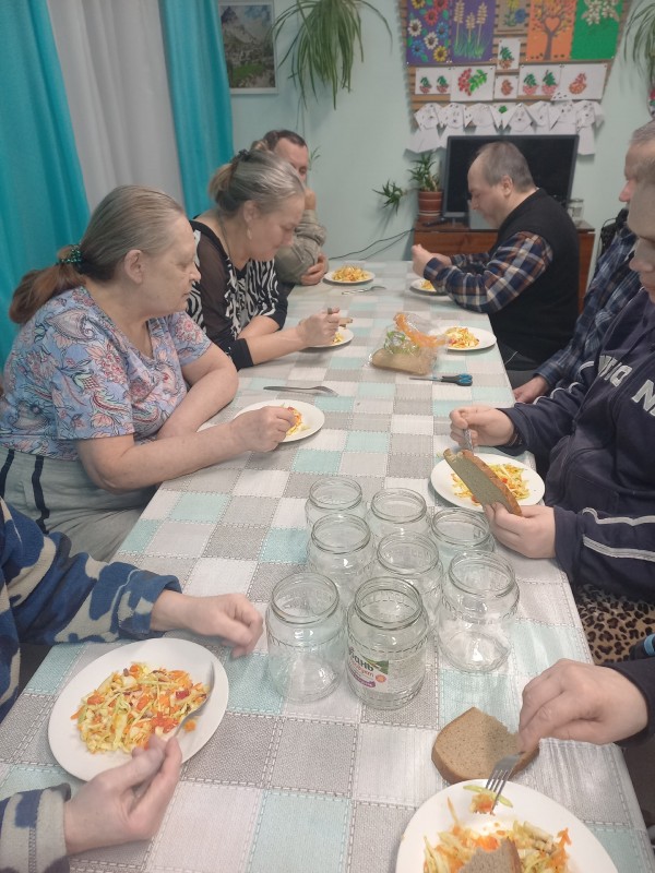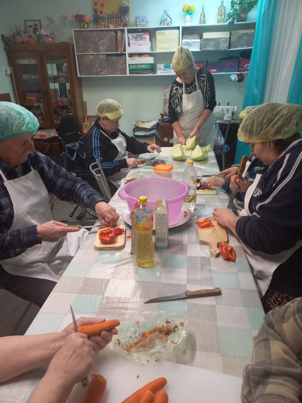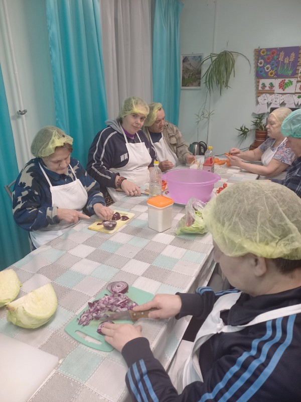 Мастер - класс" Хрустящий витамин" .Вкусно, полезно и очень душевно! Именно так можно описать наш прошедший кулинарный мастер- класс. Наши получатели услуг с большим энтузиазмом взялись за дело : кто-то уверенно шинковал капусту, кто-то с особым чувством резал лук и сладкий перец. Получился не просто салат ,а символ совместного труда и общения