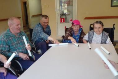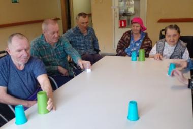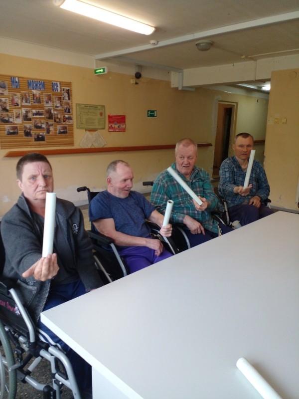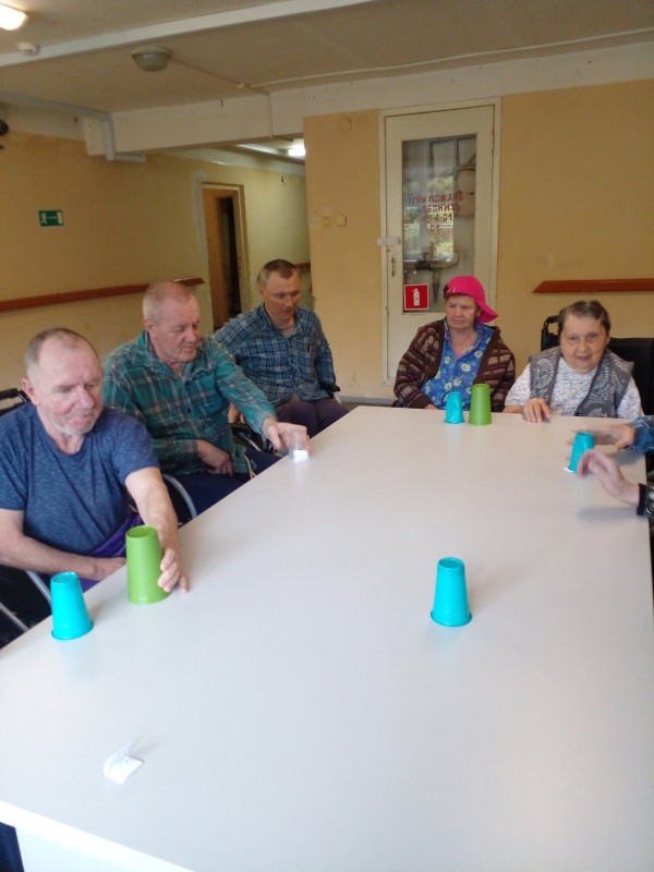 Инструктор по АФК Глушакова Г. Н провела игры: " Передай и назови", " Задания в стаканчике", получатели социальных услуг выполняли зрительную гимнастику по карточкам и показу, упражнения с трубками.