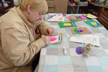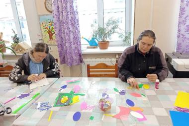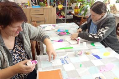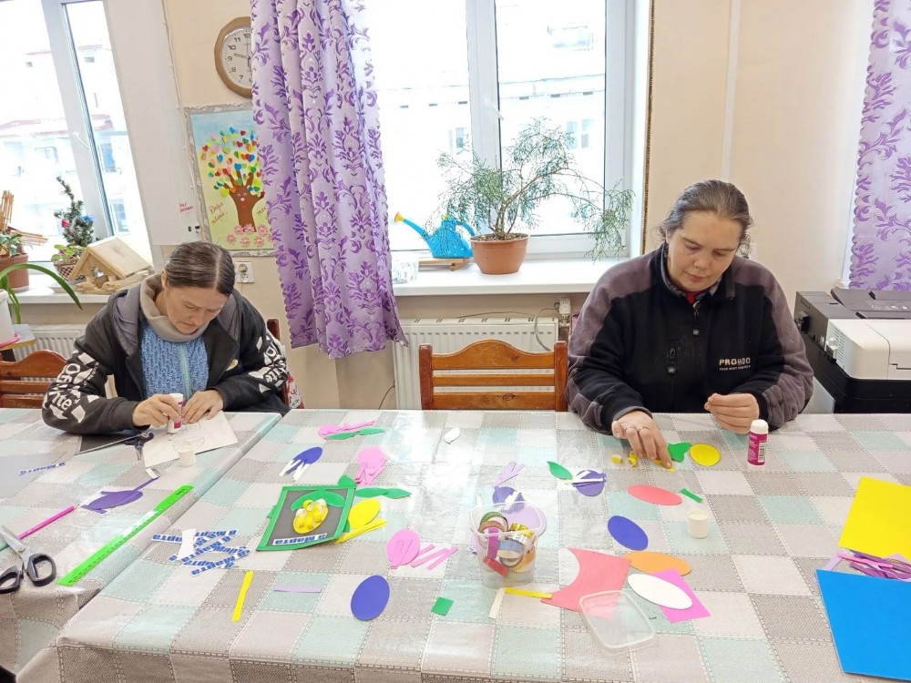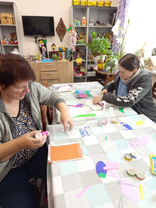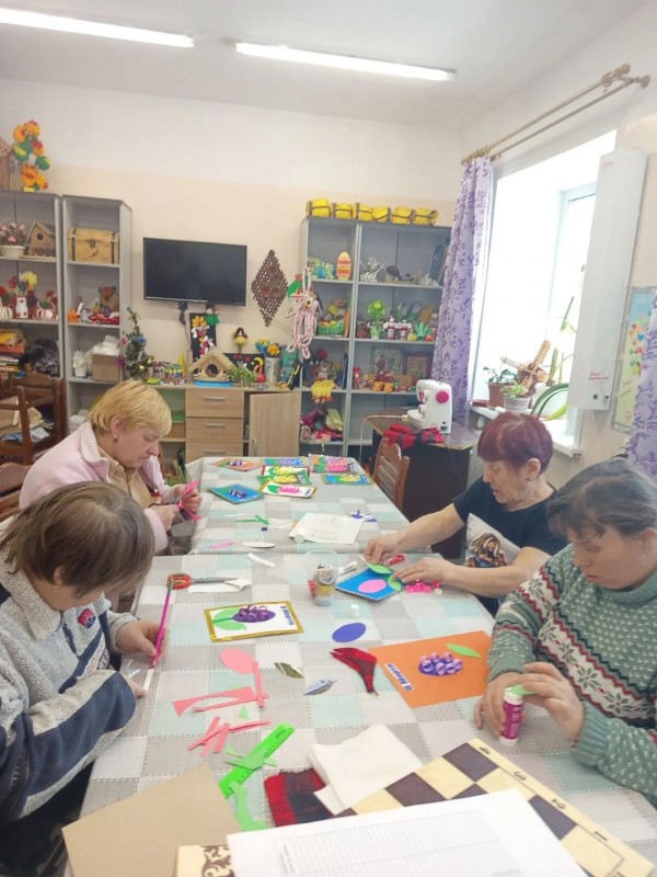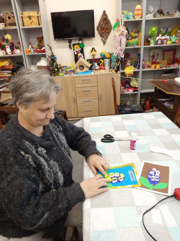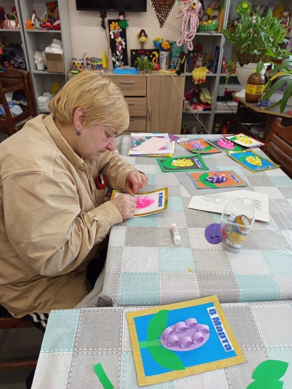 В клубе по интересам «Вдохновение» полным ходом идет подготовка к 8 Марта. На тематическом мастер-классе наши подопечные вместе с инструктором по труду Ильиной Валентиной Николаевной своими руками создавали праздничные открытки-аппликации. Эти открытки предназначены для поздравления маломобильных получателей социальных услуг: в них они вложили добрые пожелания и искреннее желание подарить радость людям. Мероприятие проходило в атмосфере тепла и доброжелательности. Каждый проявил свой творческий потенциал, вложил частичку души и весеннее настроение, самостоятельно подбирая цвет бумаги и картона. В итоге получились уникальные открытки с гиацинтами! Изготовление открыток к 8 марта для людей с инвалидностью — это творческий процесс, способствующий реабилитации, развитию мелкой моторики, художественного вкуса и социальной адаптации. Групповые занятия арт-терапией подразумевают работу в команде, что позволяет повысить коммуникативные навыки, развивает фантазию и воображение, а также дает возможность для самореализации. Мы от души хотим поздравить с наступающим праздником 8 Марта всех женщин и пожелать здоровья, достатка, любви и мирного неба!