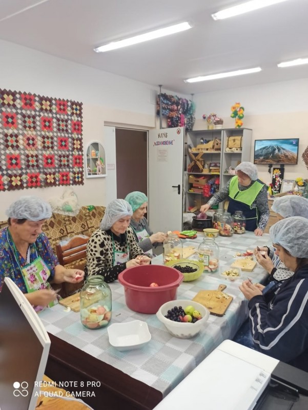 Сегодня на улице пасмурно, но это не помешало участникам клуба по интересам "Вдохновение" использовать яркие краски ягод и фруктов и приготовить компот на зиму.