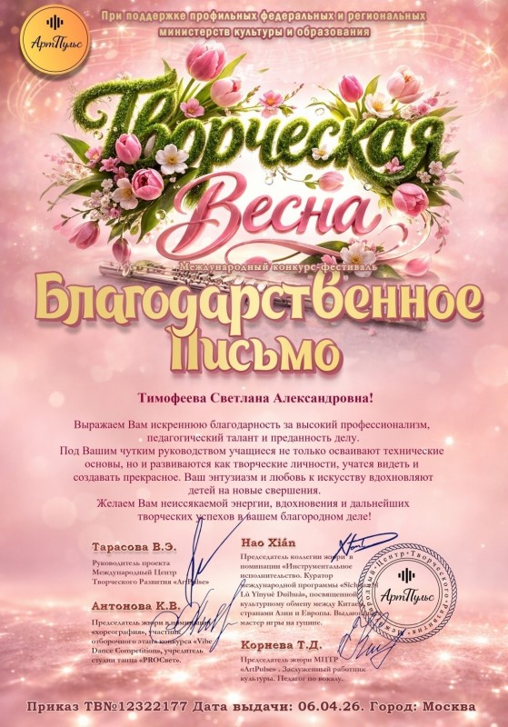Оргкомитет «ArtPulse» завершил работу и высылал документы, которые подтверждают участие и награды