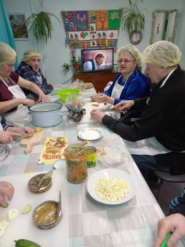 « Праздник творчества и вкуса: готовимся к Новому году вместе!» Это был не просто урок готовки , а настоящий праздник общения, творчества и совместной подготовки к самому волшебному времени года. « Оливье»- салат-символ. Было очень душевно вместе нарезать ингредиенты, вспоминать семейные рецепты. Это вернуло ощущение домашнего семейного Нового года. Аромат новогодней выпечки. Процесс приготовления и украшения печенья стал настоящим волшебством! Раскатывать тесто, вырезать звездочки, елочки, снежинки – это было прекрасной творческой терапией. Каждое печенье получилось уникальным, со своим характером.