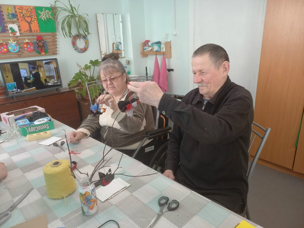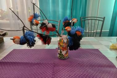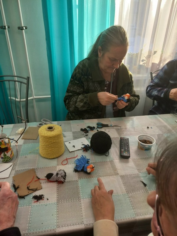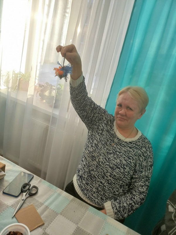Целью занятия было активировать познавательный интерес к окружающему миру, знакомство с техникой выполнения поделок из ниток, создание интерьерного украшения. Вначале занятия вспомнили птиц Карелии, разгадывали загадки.