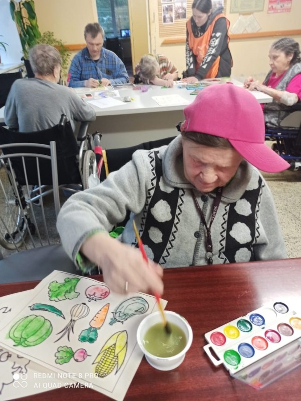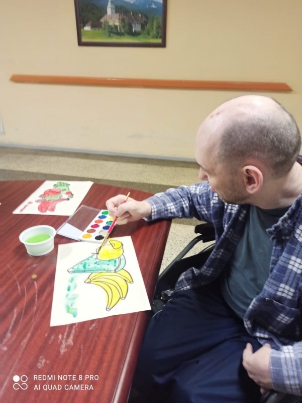 Мы достали раскраски, и каждый наш подопечный выбрал себе картинку по душе. Перед тем как взять в руки карандаши и кисти, мы немного потренировали внимание: каждый называл вслух цвета, которые планировал использовать. А потом началось самое интересное — процесс творчества! Кто-то с удовольствием взялся за цветные карандаши, кому-то больше по душе пришлись яркие фломастеры, а некоторые решили создать свои шедевры красками. Выбор материалов — тоже важная часть терапии, которая учитывает возможности и желание каждого. Работали с большим увлечением и сосредоточенностью, ведь так давно мы не раскрашивали! Итогом нашего занятия стал обновленный стенд с работами. Он теперь пестрит красками и добрыми сюжетами. Обязательно приходите полюбоваться!