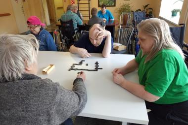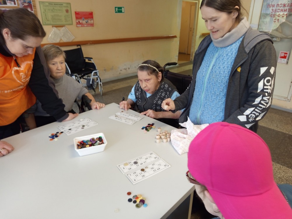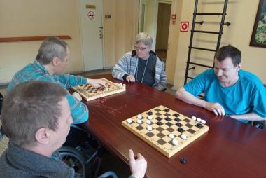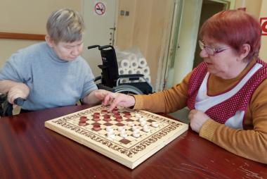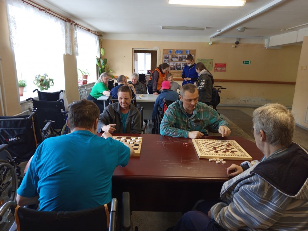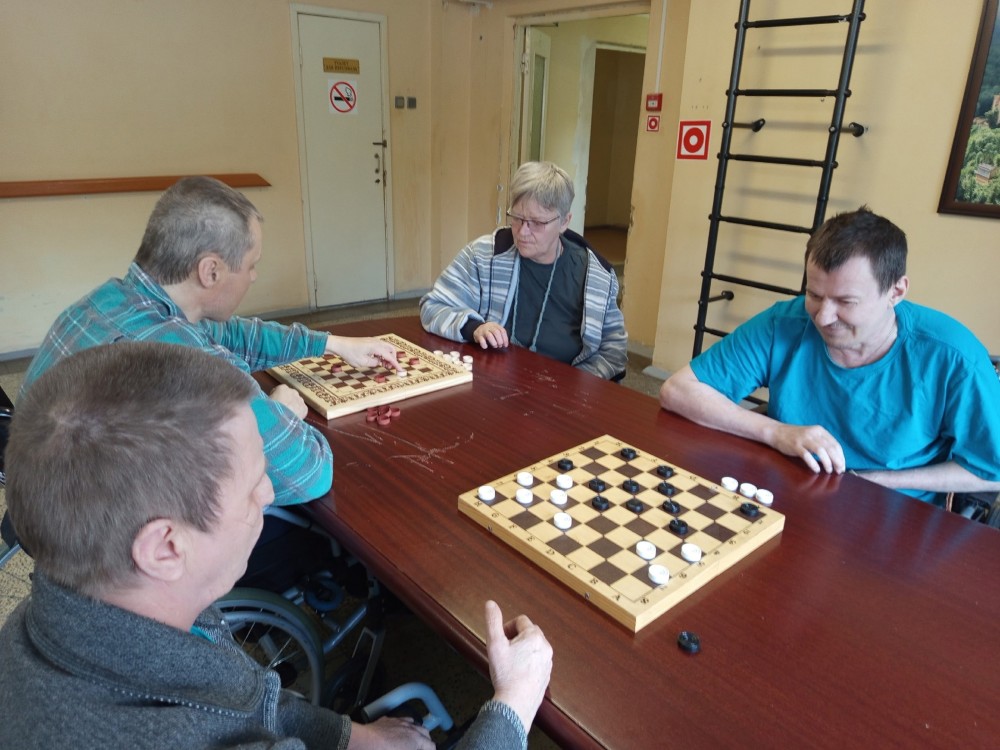 Сегодня на отделении «Милосердия» случился настоящий турнир! По просьбе наших проживающих мы устроили день игровой терапии — в ход пошли шашки, домино и любимое всеми лото.Самое трогательное событие этого дня — новичок в шашечном клубе! Алла Березина очень хотела научиться играть и с таким интересом ловила каждое слово инструктора Ильиной Валентины Николаевны, что результат не заставил себя ждать. Уже к концу занятия Алла порадовала нас своими первыми успехами! Но главное — это атмосфера. За столами было шумно, весело и по-домашнему тепло. Более опытные игроки с удовольствием подсказывали тем, кто только осваивает правила, и помогали друг другу. Вот она — настоящая командная игра!