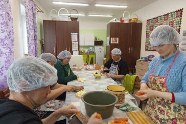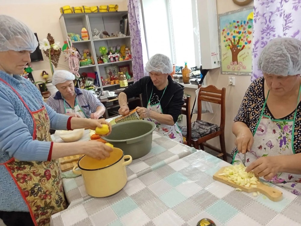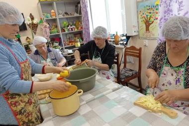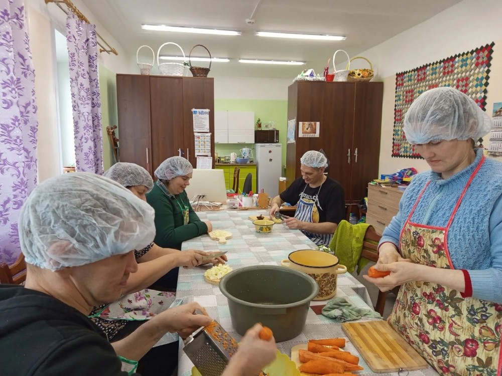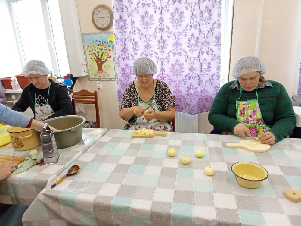 Нет, сегодня у наших участников клуба "Вдохновение" и Трудовых мастерских любимый, кулинарный мастер класс! Готовили курицу с картофелем с болгарским перцем, морковью, луком, чесноком, приправой. К такому вкусному блюду необходимы были холодные закуски и коллектив, вместе с инструктором по труду Ильиной Валентиной Николаевной, решили, что это будет морковь с чесноком и квашенная капуста - это очень бюджетно. Все дружно включились в работу - чистили и нарезали картофель, жарили курицу, натирали на терке морковь, резали лук, размельчали чеснок, заправляли салаты. Конечно же, блюда получили оценку "5", ведь все очень старались все сделать правильно, вкладывая частичку своей души. Коллектив уже сложившийся, много лет вместе, поэтому за столом было о чем поговорить, много шутили, смеялись и обсуждали блюда, которые они уже умеют готовить . Инструктору по труду всегда приятно смотреть на их довольные лица, их улыбки . А в огромной копилке появилось еще одно блюдо :)