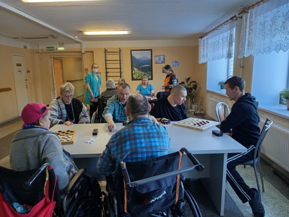Состоялся грандиозный турнир между двумя отделениями: Активным и Отделением интенсивного ухода. Сражение было двойным: в лото и в шашки! ЛОТО: БИТВА ВНИМАТЕЛЬНОСТИ Здесь главным оружием были зоркий глаз и быстрая реакция. И наши победители: