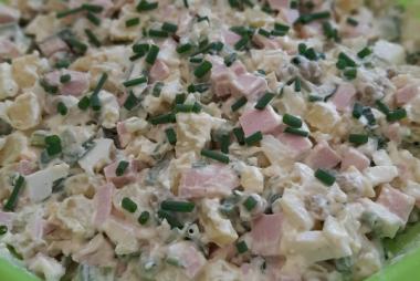 Сварили овощи и яйца на салат, аккуратно все ингредиенты нарезали кубиком. Взбили миксером сливочное масло, сахарный песок, яйца для теста на пирог. В работе использовали миксер, духовку, электрическую плиту.