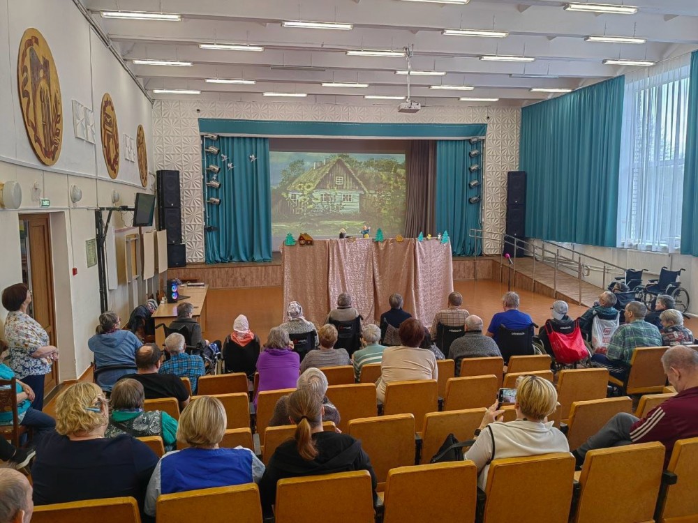 Атмосфера в актовом зале пропитана ожиданием и радостью, ведь сейчас здесь проходит премьера кукольного театра. Гости показывают нашим получателям социальных услуг удивительные сказки, которые погружают всех в мир фантазии и волшебства.Но что же происходит на сцене? О, чудо! Как только сказочные герои попадают в руки наших зрителей, они оживают, обретают голоса и начинают разговаривать. Эта удивительная магия придаёт представлению особую форму, создавая уникальный контакт между артистами и зрителями. С каждым мгновением зрители становятся не просто наблюдателями, а полноценными участниками театрального действия.В такие моменты мы понимаем, насколько важны такие встречи, наполненные добротой, творчеством и общением. Кукольный театр — это не просто искусство, это мост между людьми, способный объединять и вдохновлять на новые свершения. Мы искренне рады новому знакомству и чувствуем, что наша дружба навсегда.
