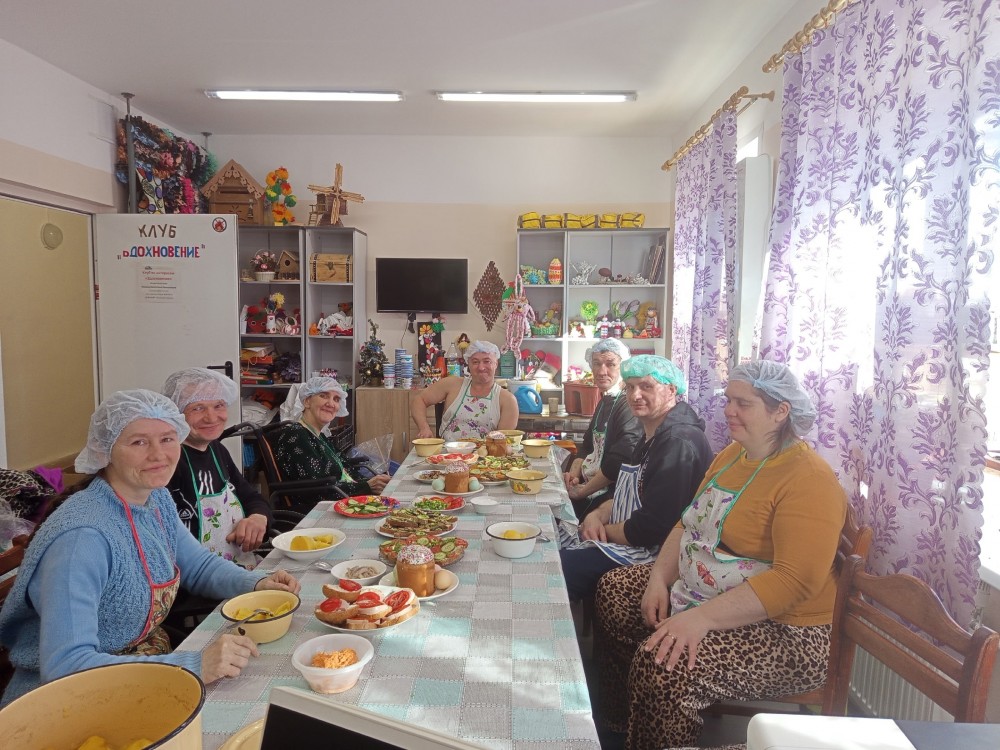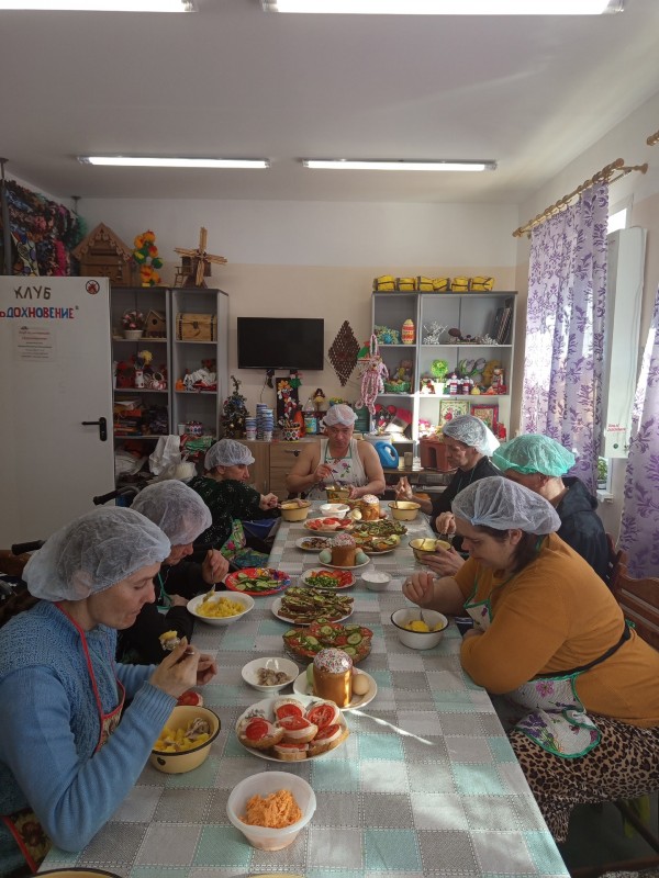 Посмотришь на эти кадры и сразу хочется вдохнуть полной грудью! Вот оно, наше пасхальное счастье, которое мы создавали вместе. За этим длинным столом — не просто угощение. Это результат общей любви и заботы. Все, кто занимается в нашем клубе и в трудовых мастерских, собрались, чтобы сотворить настоящий праздник своими руками. И знаете что? У нас получилось! Каждая деталь здесь сделана с душой: