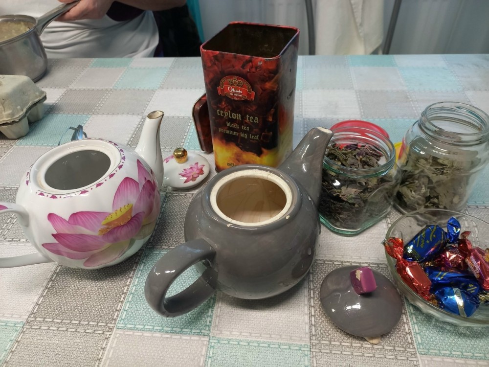 Тихая музыка, красиво накрытый стол с разным чаем и простым, но таким родным малиновым вареньем - создали ощущение, что ты пришел в гости к хорошим знакомым. Само действо неспешного чаепития, где можешь просто поговорить, без спешки и телевизора на фоне,- это такой дефицит в наше время. Мероприятие напомнило о важности этих маленьких пауз в жизни.