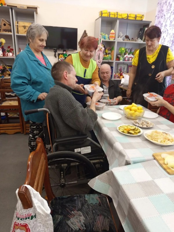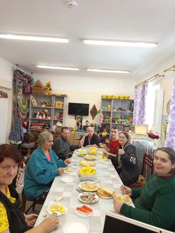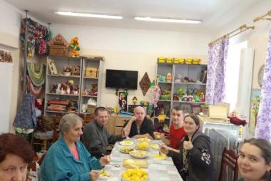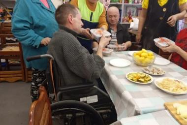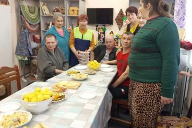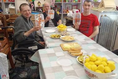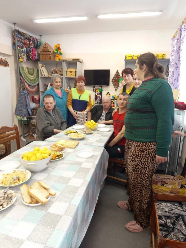 Участницы клуба "Вдохновение" устроили сюрприз для мужчин из Трудовых мастерских! Организовали небольшой, но очень уютный стол с домашними соленьями собственного приготовления и картошечкой. Может, угощение и не роскошное, но главное ведь не яства, а внимание!