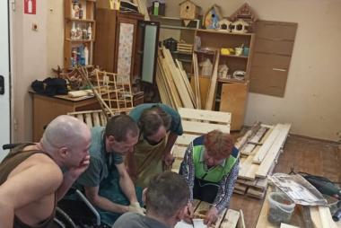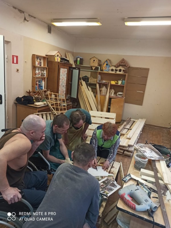 В трудовых мастерских под руководством инструктора по труду Валентины Николаевны Ильиной трудятся мужчины, создавая различные деревянные изделия. В эти дни вспоминаем народные промыслы Карелии.