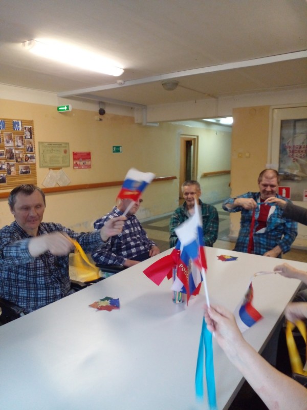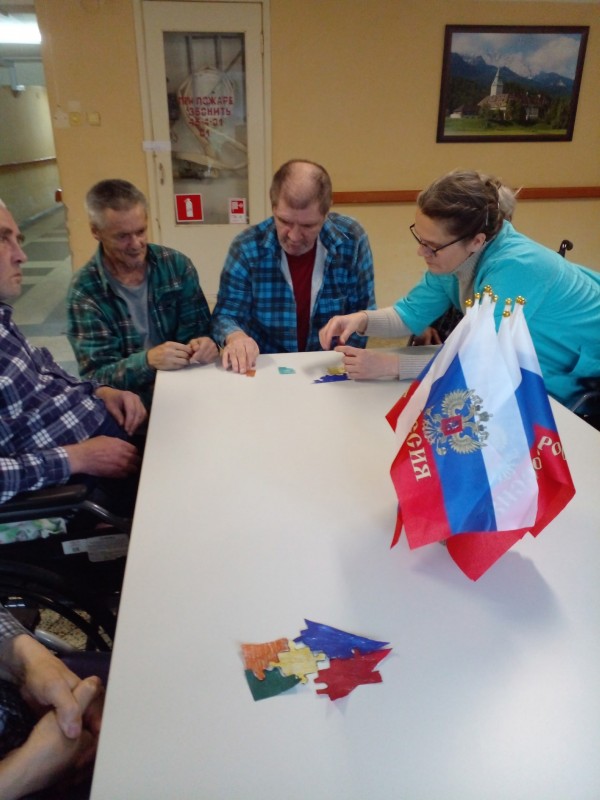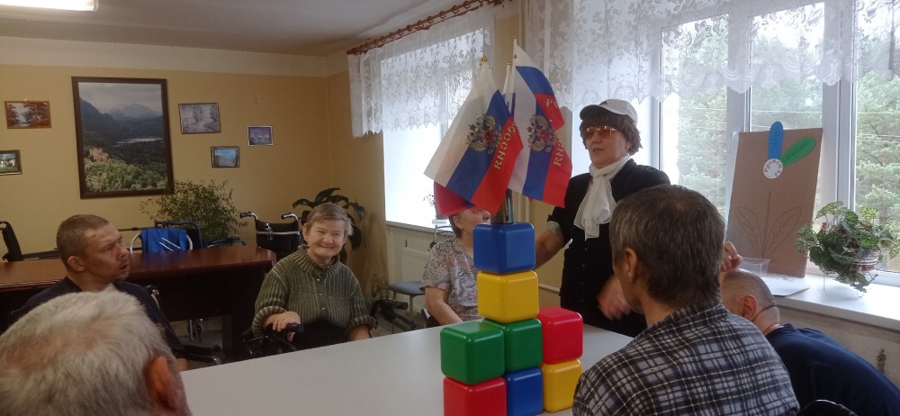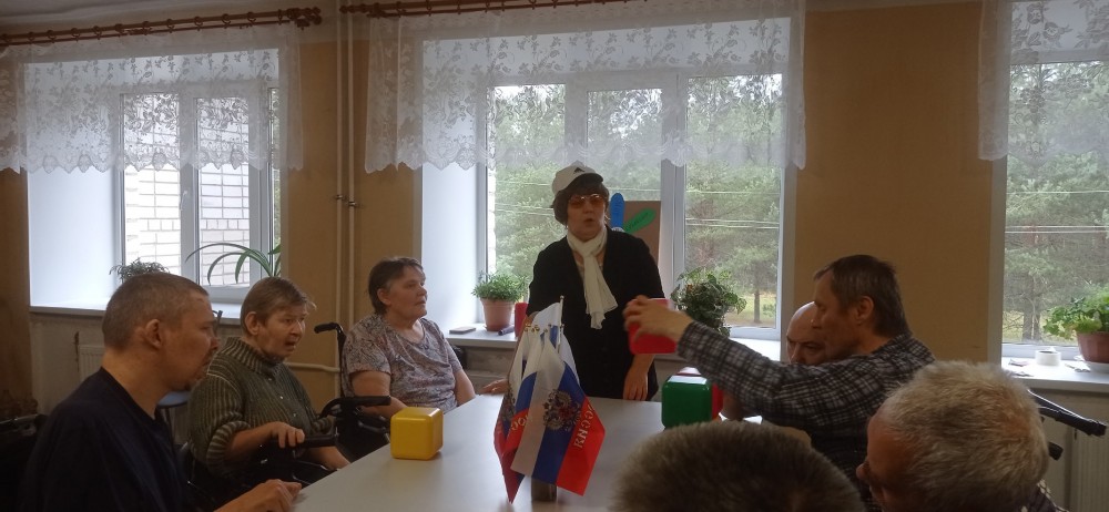 Занятие было построено так, чтобы через задания и игры получатели социальных услуг поняли важность народного единения, поддержки и проявления доброты.