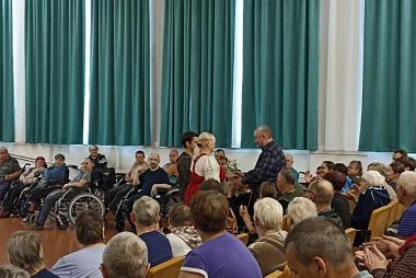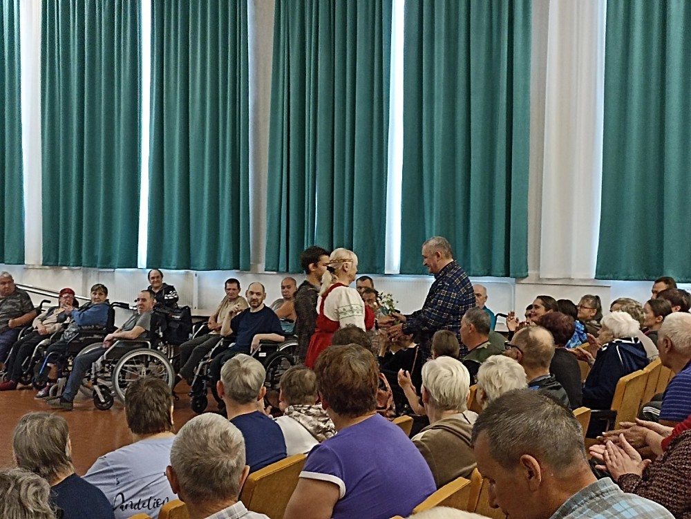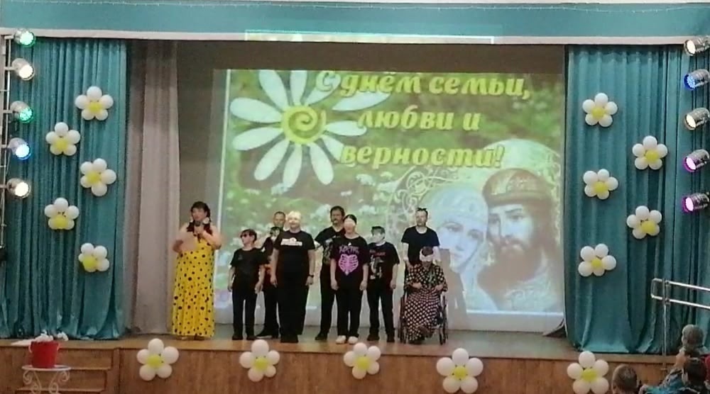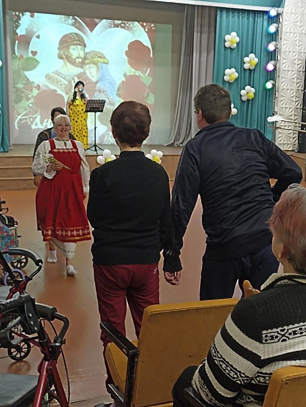 Именно с этой замечательной песни на стихи Р. Рождественского начался сегодняшний концерт, посвященный Дню семьи, любви и верности.Этот праздник объединил 12 семейных пар из Видлицкого дома-интерната. Каждая пара получила в подарок букет ромашек — символ этого светлого дня, а также сладкий сюрприз.Весь зал активно гадал на ромашке, вспоминая прекрасные моменты, которые дарит нам жизнь. Мы танцевали белый танец, этот волшебный момент, который сближает сердца и наполняет душу радостью.Выражаем огромную благодарность всем сотрудникам, кто помог в организации мероприятия. Это событие стало настоящим праздником любви и единства, и хочется верить, что такие моменты согревают наши сердца и приносят счастье. Пусть каждый день наполняется любовью и согласием, ведь в жизни действительно всё начинается с любви!