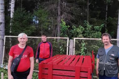 Вместе с инструктором по труду обсудили план работы. Выбрали место, расчистили территорию. Установили прочный короб. Приделали ручки для удобства, покрасили. Получилась компактная, удобная конструкция.